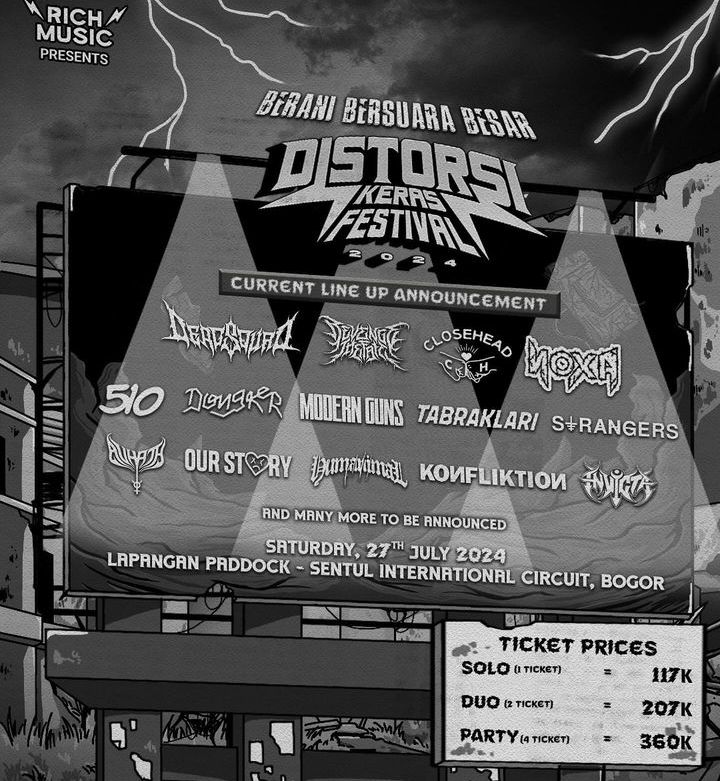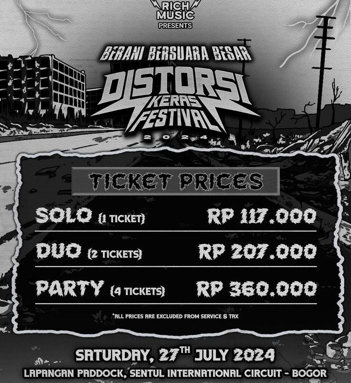 distorsi Keras Festival 2024 akan dilaksanakan pada hari sabtu tanggal 27 July 2024 di lapangan Paddock, sirkuit Sentul , Bogor.