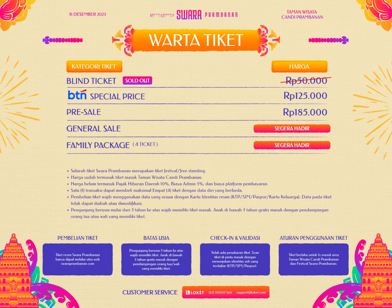 Jangan lewatkan kesempatan untuk menjadi bagian dari perayaan seni, budaya, dan musik yang mempesona di Candi Prambanan sambil menikmati senja di akhir tahun 2025.