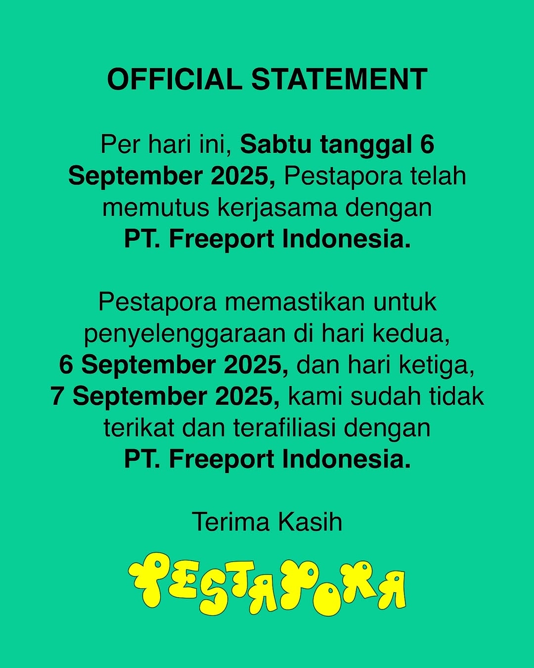Keterlibatan PT Freeport Indonesia dalam festival musik Pestapora 2025 memicu gelombang kekecewaan dari para musisi. Mereka menilai kehadiran sponsor tersebut tidak sejalan dengan nilai yang selama ini mereka bawa, terutama terkait isu lingkungan dan keberpihakan pada masyarakat.